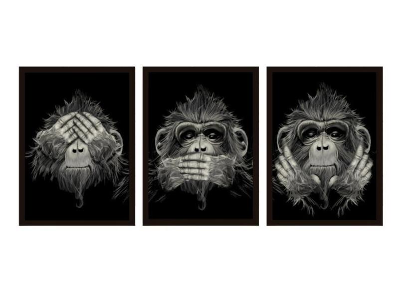 Quadro Decoração Sala Quarto 3 Peças Macacos Surdo Mudo Cego