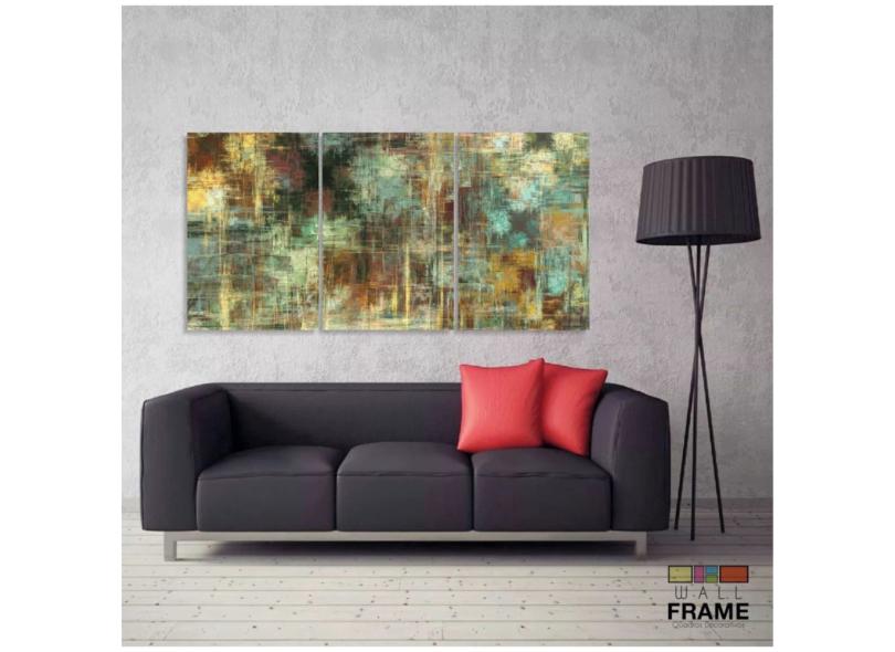 Quadro Decorativo Abstrato Madeirado 120x60 3 peças sala qu