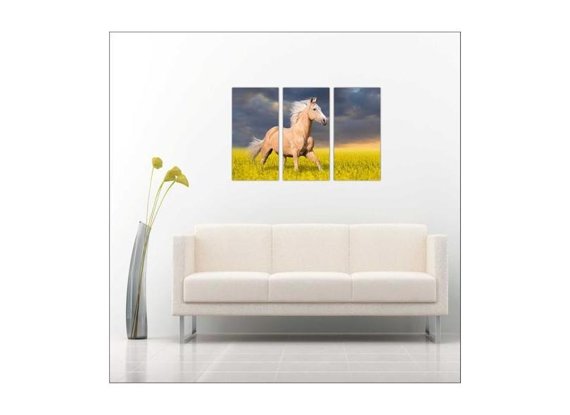 Quadro Decorativo Animais Cavalo Salas 3 peças Com Moldura - Vital Qua