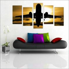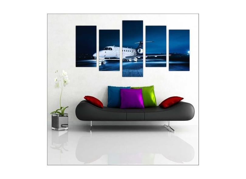Quadro Decorativo Avião Aeronave Salas 5 Peças Com Moldura - Vital Qua