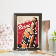 Quadro Decorativo Bebida Vintage Rum 33x43 Moldura Marrom