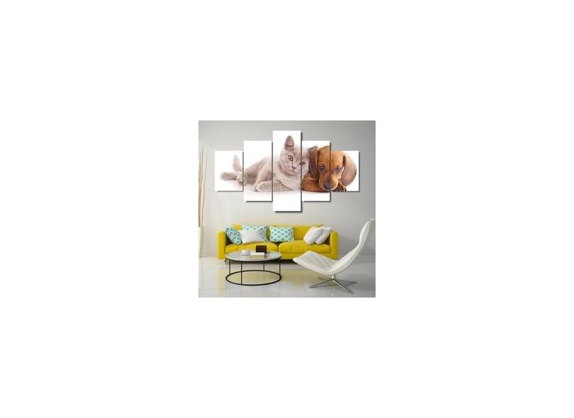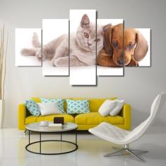 Quadro Decorativo Cachorro 5 partes 130x65 em tecido