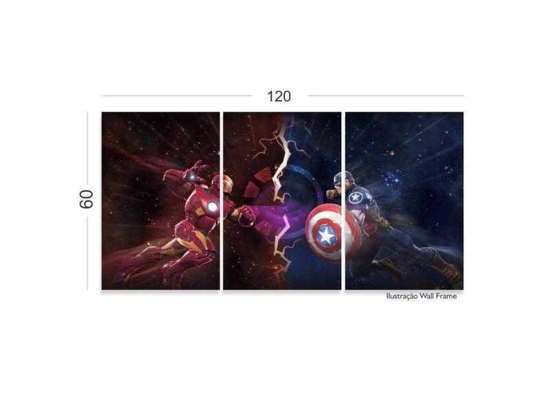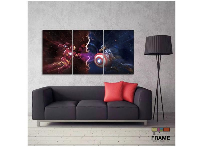 Quadro Decorativo Capitao America Guerra Civil 120x60 3 peça
