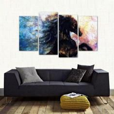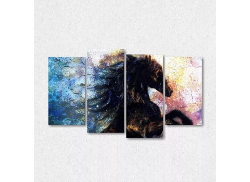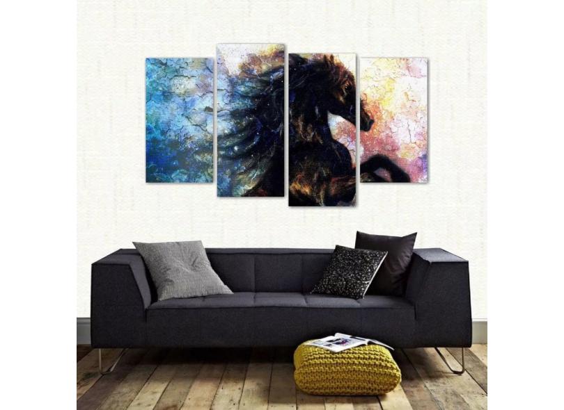 Quadro Decorativo Cavalo Escritório Em Tecido 4 Peças