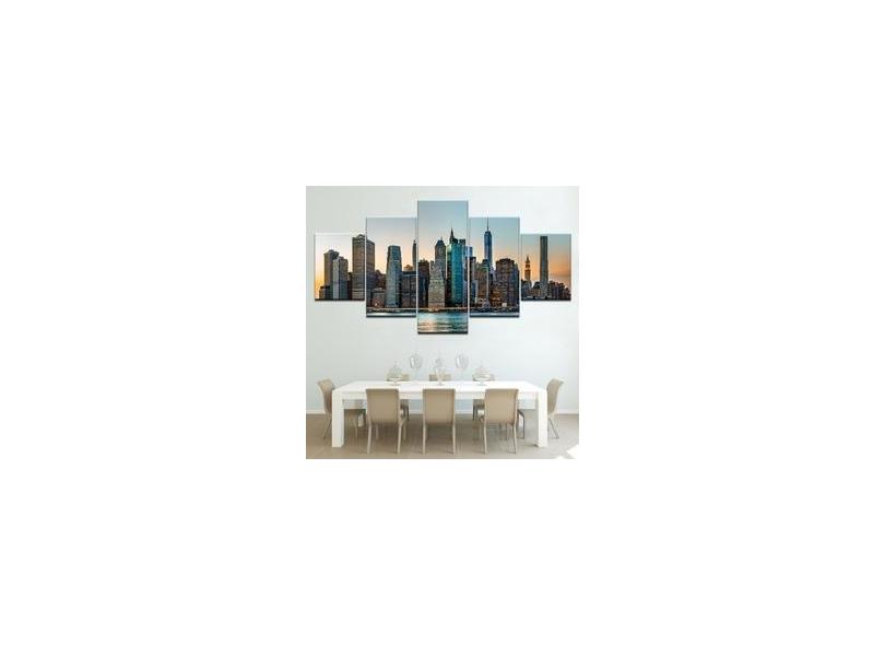 Quadro Decorativo Cidade 5 peças 130x65 cm em tecido