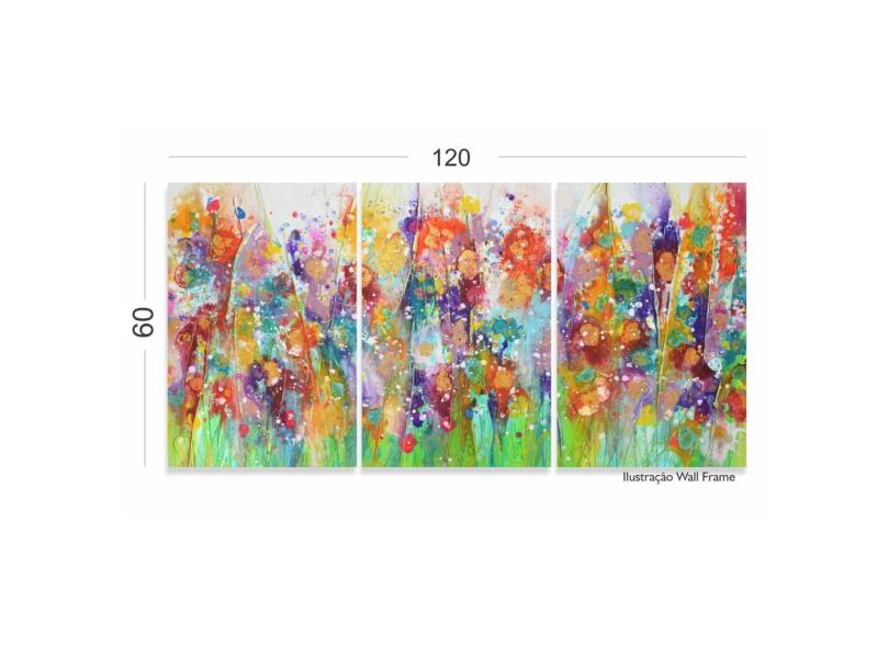 Quadro Decorativo Colorido Flores Abstrato 120x60 3 pçs