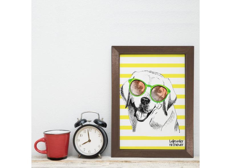 Quadro Decorativo com Moldura Marrom Cachorro Labrador 22x32cm