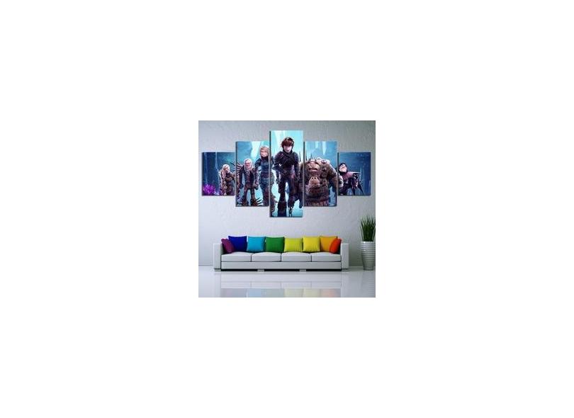 Quadro Decorativo Como Treinar seu Dragão6 5 peças 130x65 cm