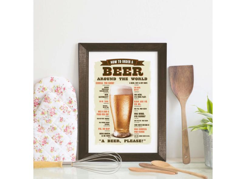 Quadro Decorativo Frase Pedir Cerveja 22x32cm Moldura Marrom