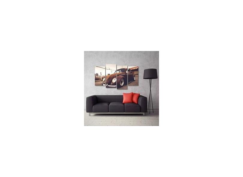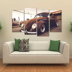Quadro Decorativo Fusca Antigo Carros Mosaico Tecido 4 Peças