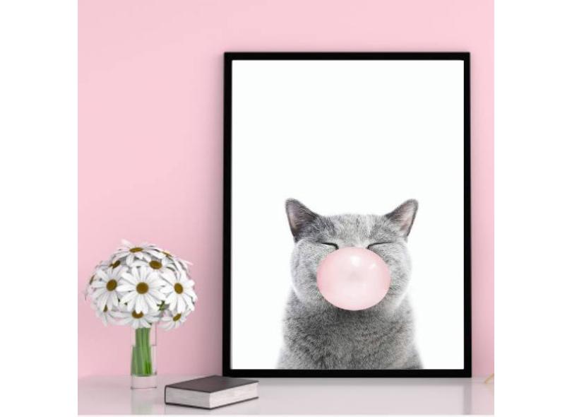 Quadro Decorativo Gatinho Chiclete 45x34cm