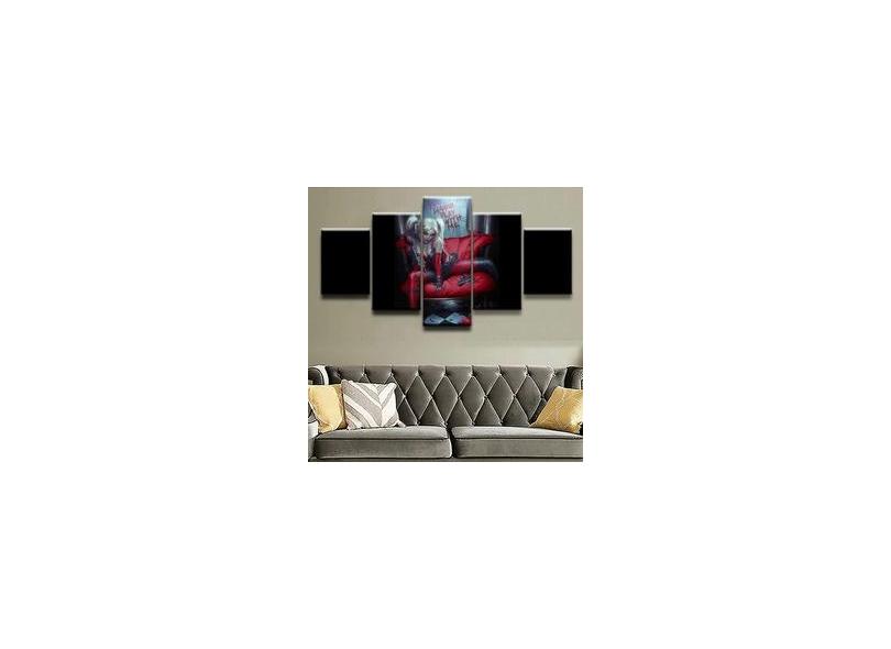 Quadro Decorativo Harley Quinn 5 peças 130x65 cm em tecido