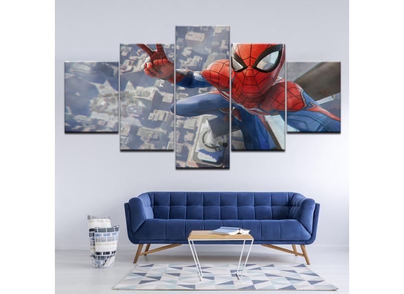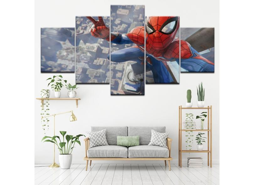 Quadro Decorativo Homem Aranha0 5 peças 130x65 cm em tecido
