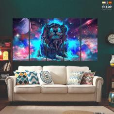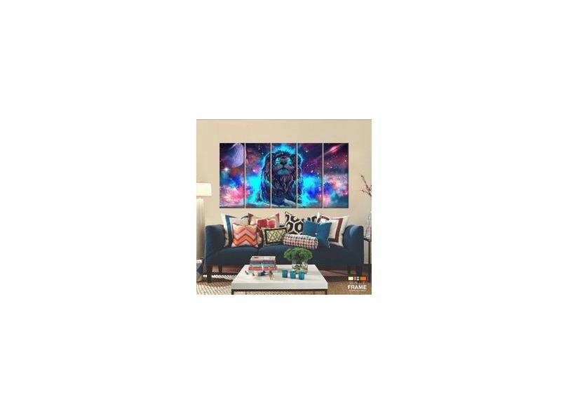 Quadro Decorativo Leão Do Universo 140x65 5 peças 5 peças