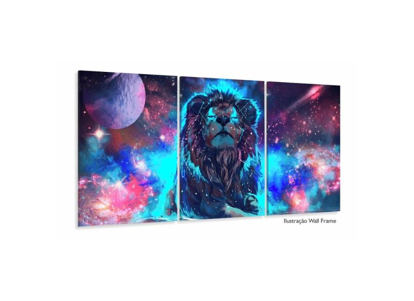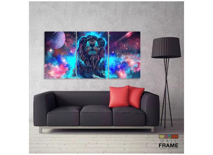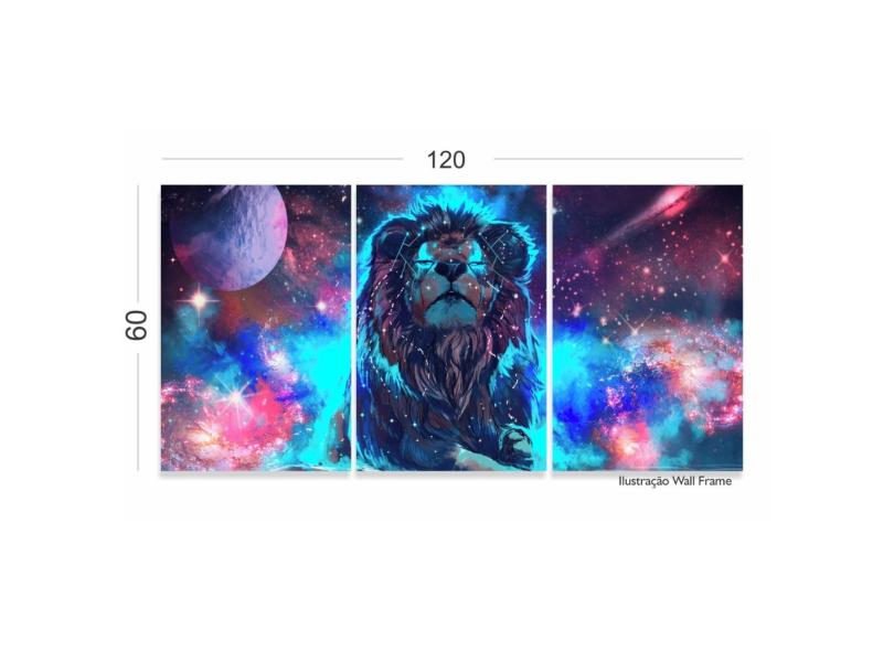 Quadro Decorativo Leão do Universo Em Tecido120x60 3 peças