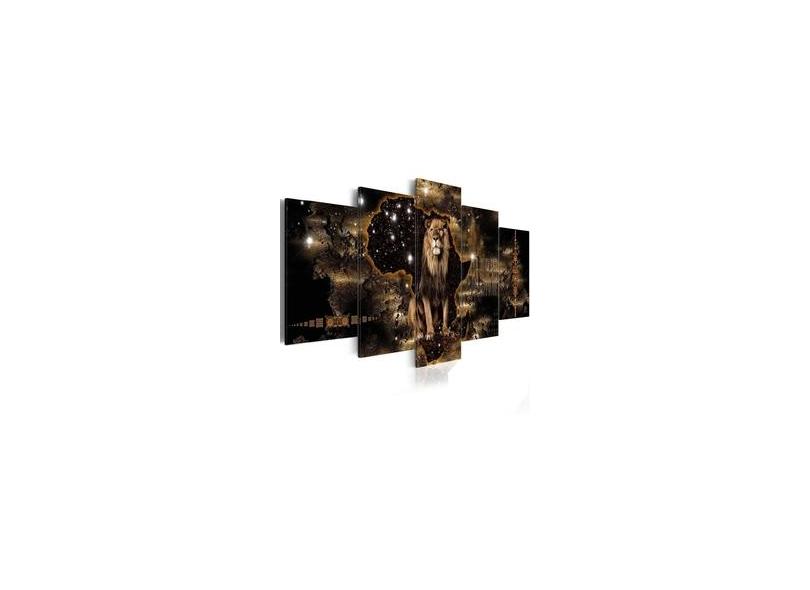 Quadro Decorativo Leão Marrom Universo Sala 5 Peças