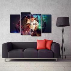 Quadro Decorativo Lobo Escritório Mosaico Em Tecido 4 Peças