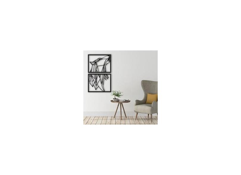 Quadro Decorativo Lobo Poligonal Vazado 2 Peças Mdf 3mm - 82x50