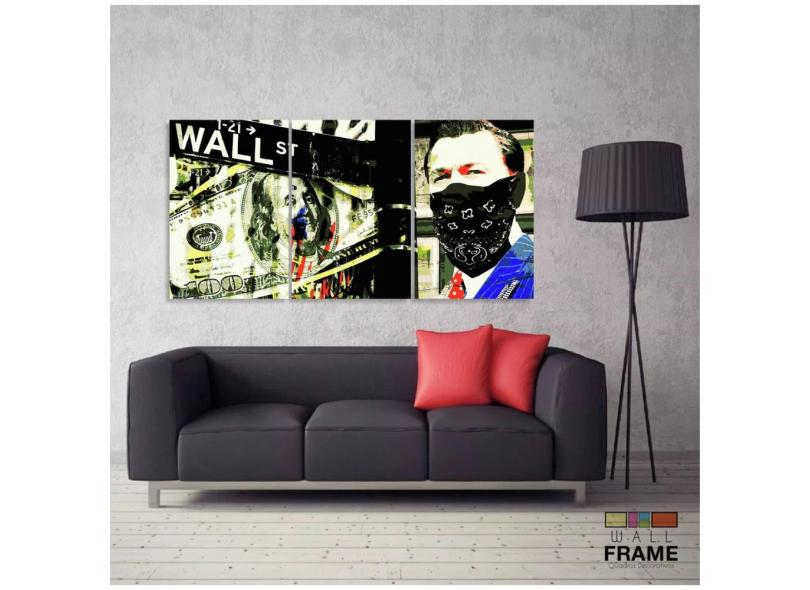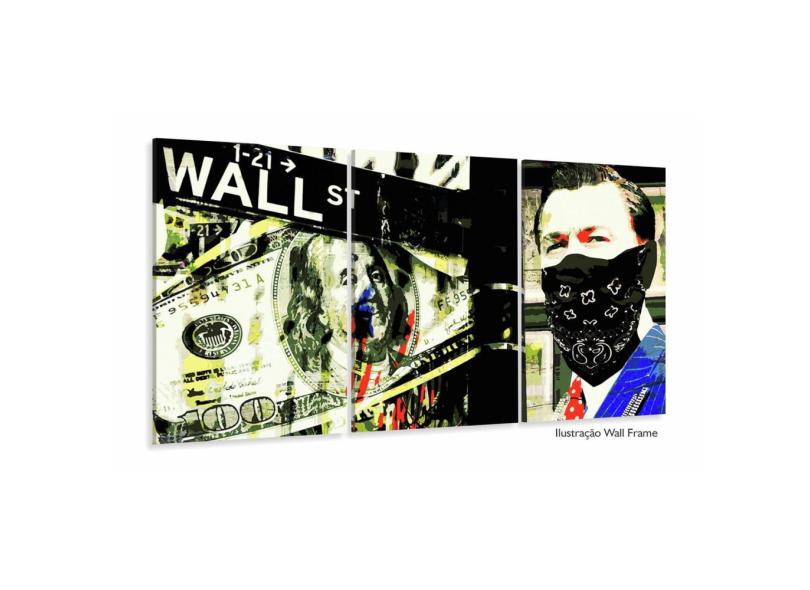 Quadro Decorativo Lobo Wall Street 3 Peças 120x60 Mosaico