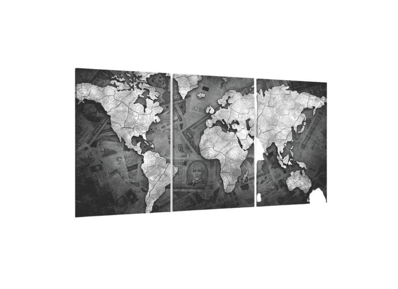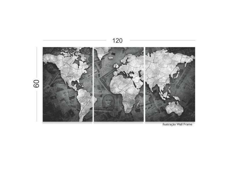 Quadro Decorativo Mapa Mundi E Tecido 3 Peças 1