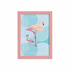 Quadro Decorativo MDF Flamingos e Círculos Moldura 22x32cm