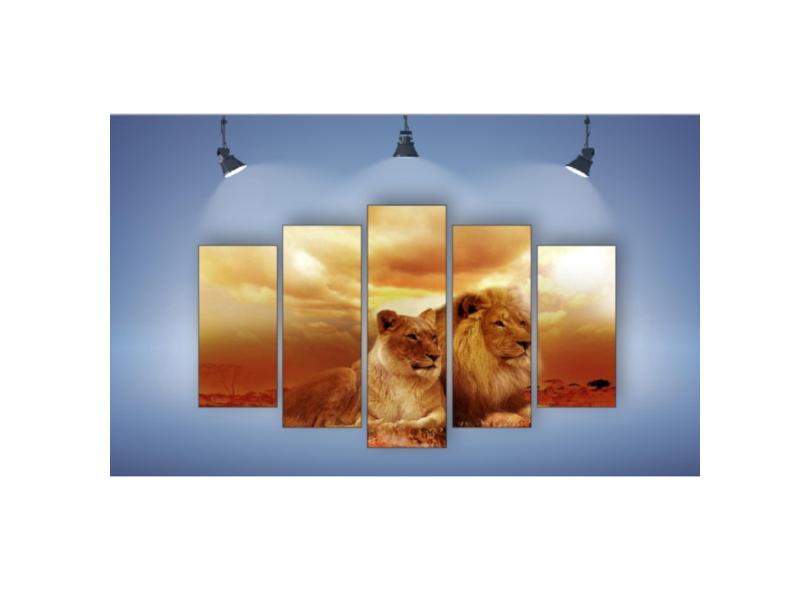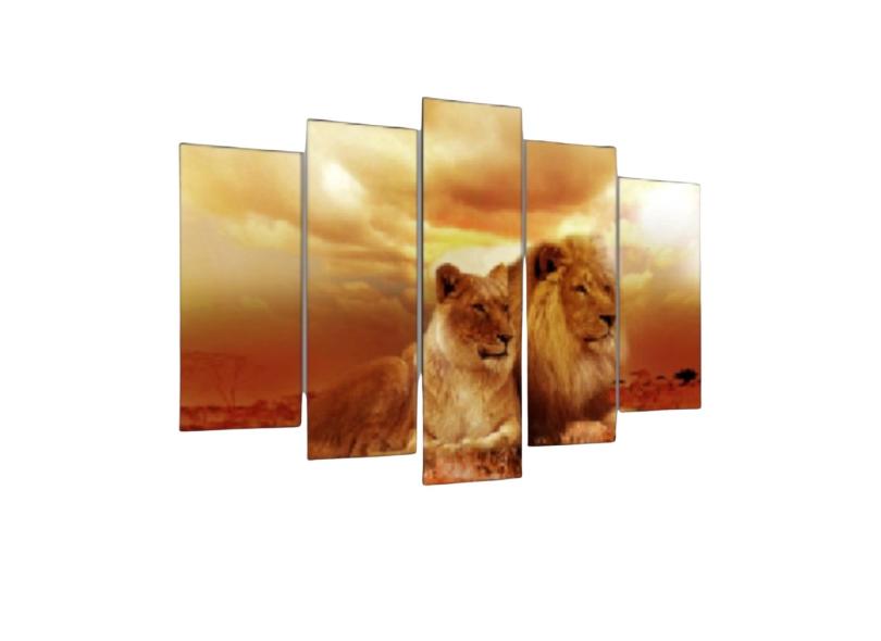 Quadro Decorativo Mosaico 5 Peças Mod041 Leão E Leoa Sol