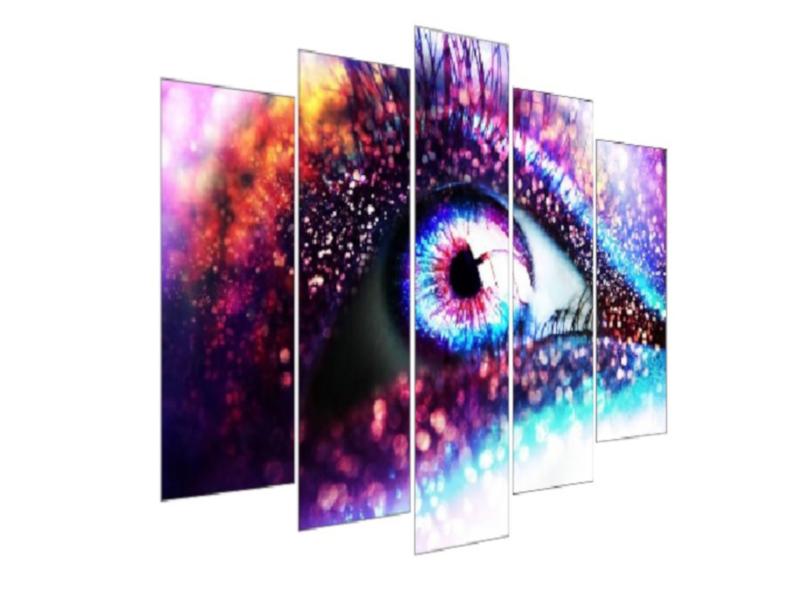 Quadro Decorativo Mosaico 5 Peças Mod1342 Olho Roxo Sombra