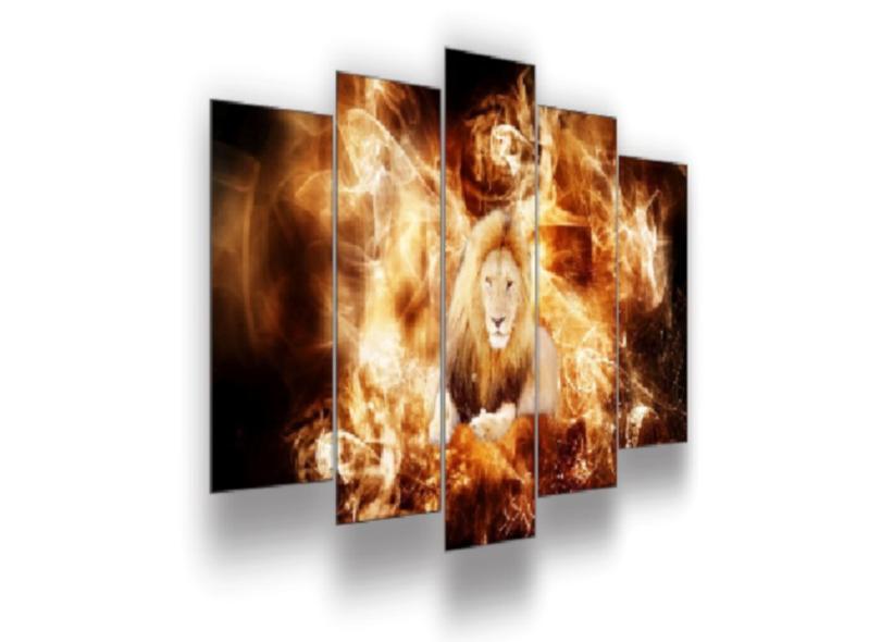 Quadro Decorativo Mosaico 5 Peças Mod358 Leão De Judá 11