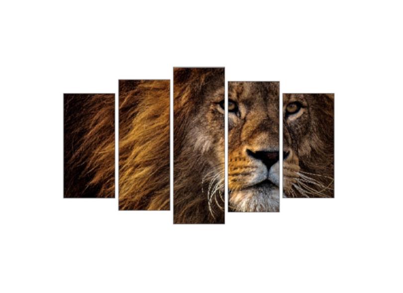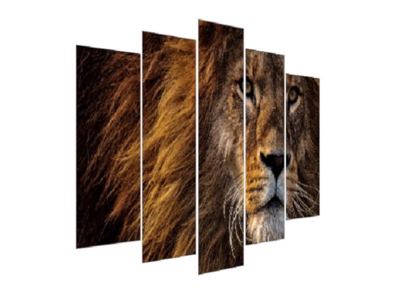 Quadro Decorativo Mosaico 5 Peças Mod805 Leão Solitário