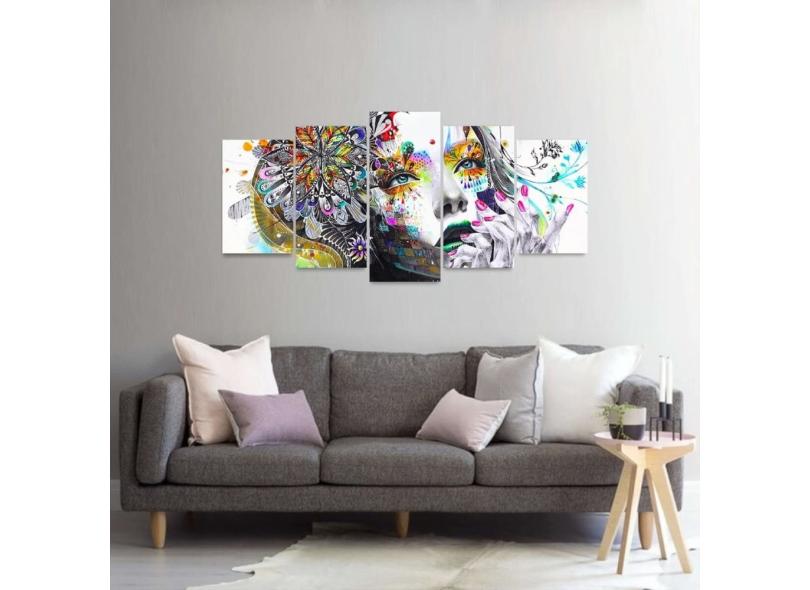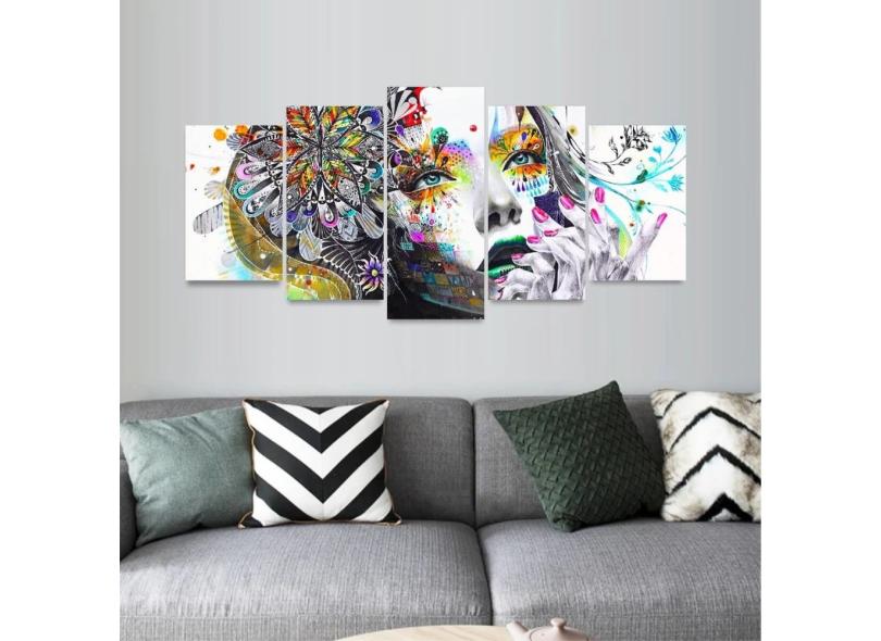 Quadro Decorativo Mosaico 5 Peças Mulher Colorida Abstrata