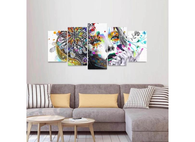 O menor preço encontrado no Brasil para Quadro Decorativo Mosaico 5 Peças Mulher Colorida Abstrata atualmente é R$ 165,00.