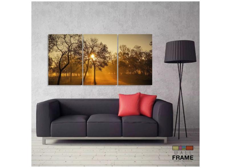 Quadro Decorativo Nascer Do Sol Na Floresta 120x60 3 peças S