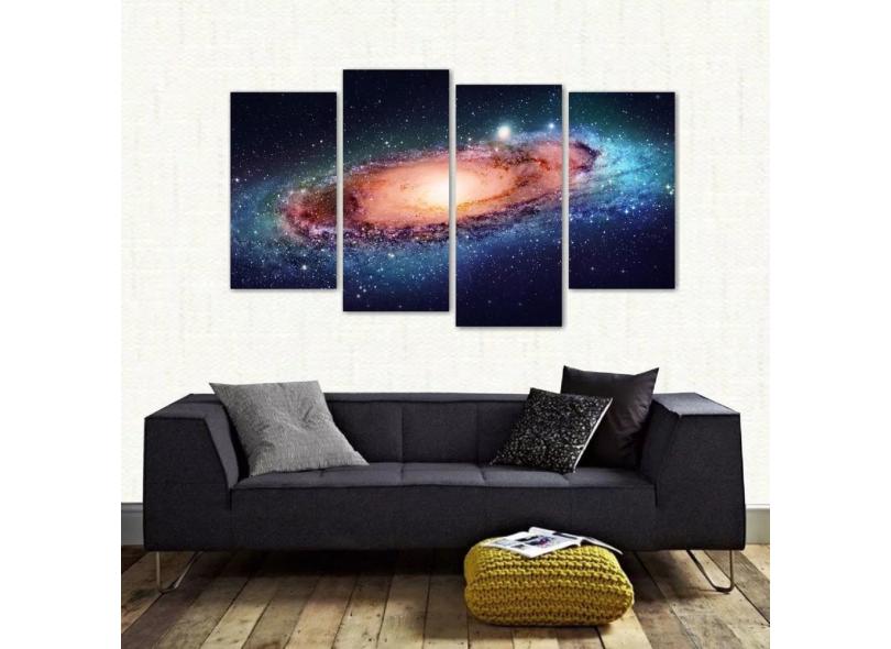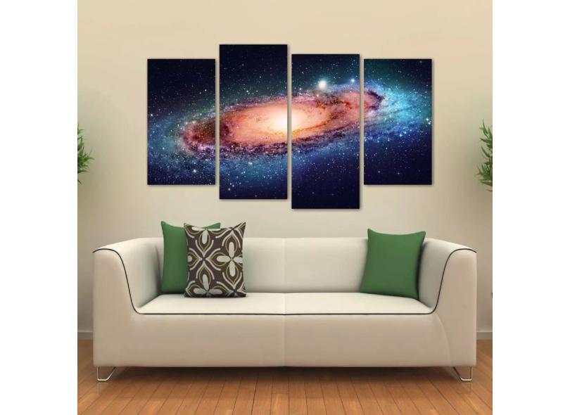 Quadro Decorativo Paisgem Do Espaço Galáxia Tecido 4 Peças 1