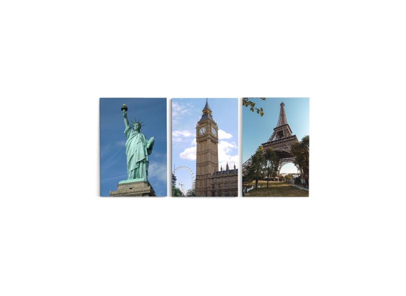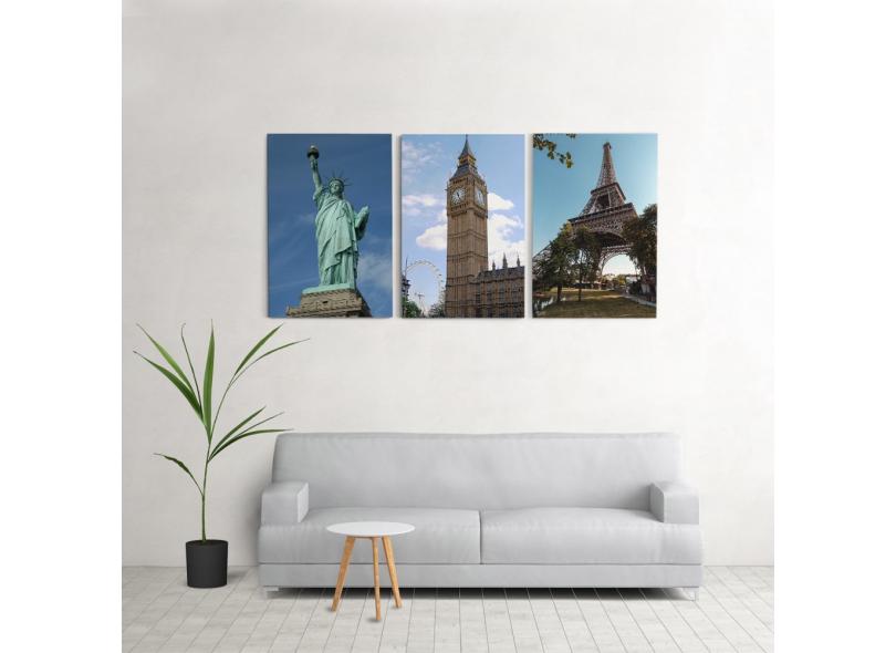 Quadro Decorativo Para Sala 60X120Cm Paris Londres Nova York