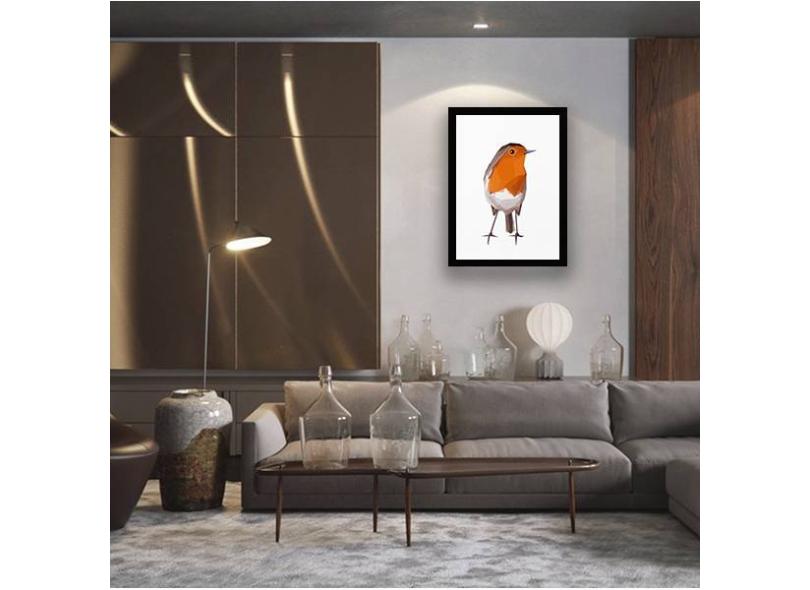 Quadro Decorativo Passarinho Geométrico Laranja 45x34cm