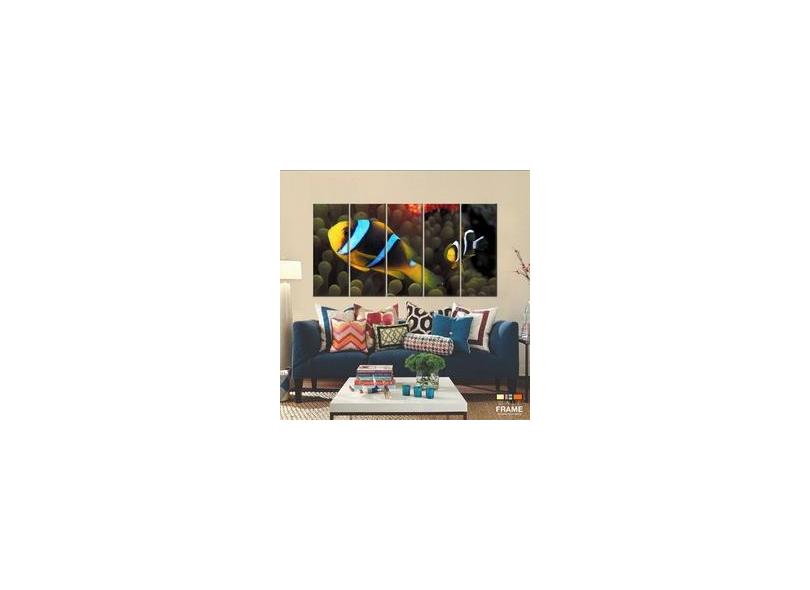 Quadro Decorativo Peixe Palhaço 140x65 5 peças
