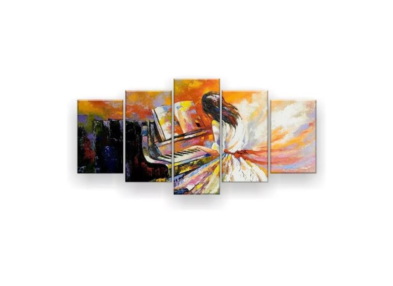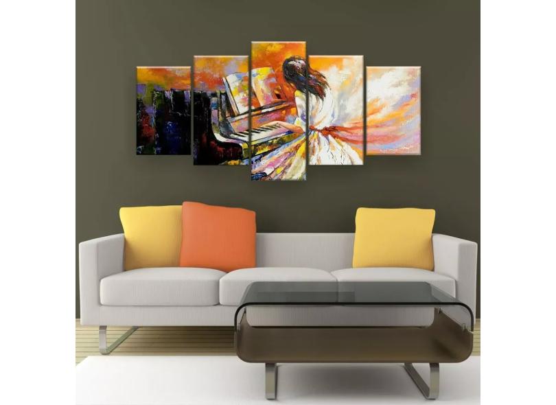 Quadro Decorativo Pintura Mulher Do Piano 129x61 Kit 5 Pcs