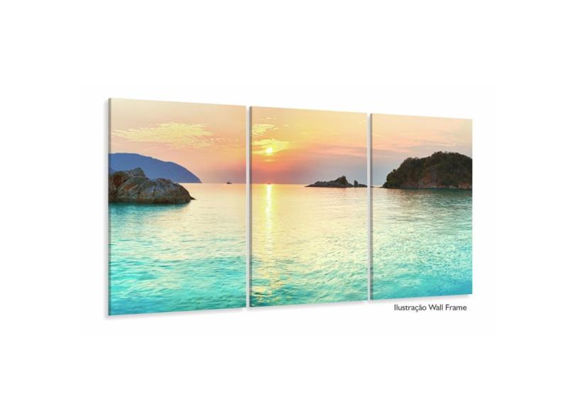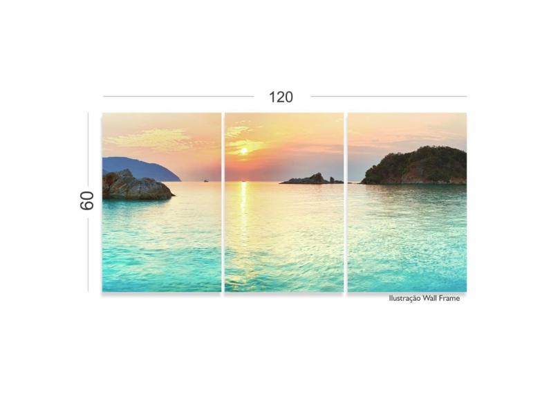 Quadro Decorativo Praia Por Do Sol Hd 120x60 3 peças