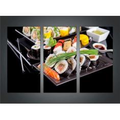 Quadro Decorativo Restaurante Oriental Sushi Gourmet Com 3 peças Com M