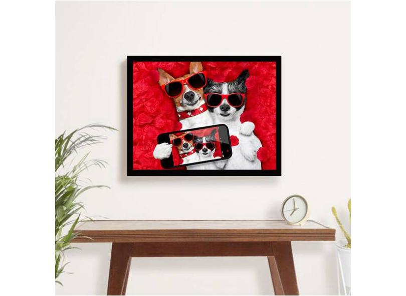 Quadro Decorativo Selfie Gatinho e Cachorrinho 45x34cm