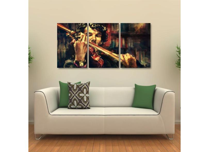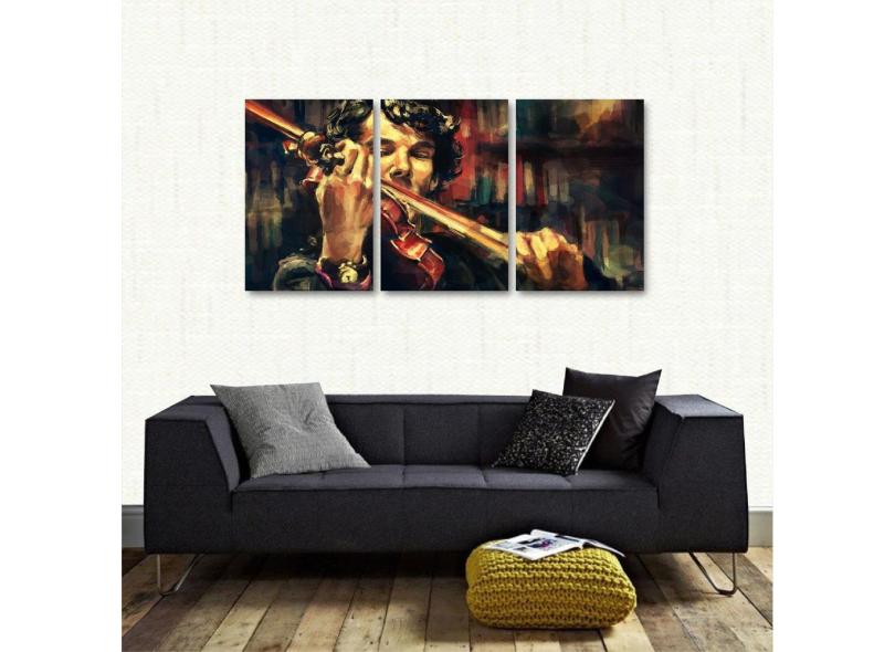 Quadro Decorativo Sherlok Holmes Violino Em Tecido 3 Peças