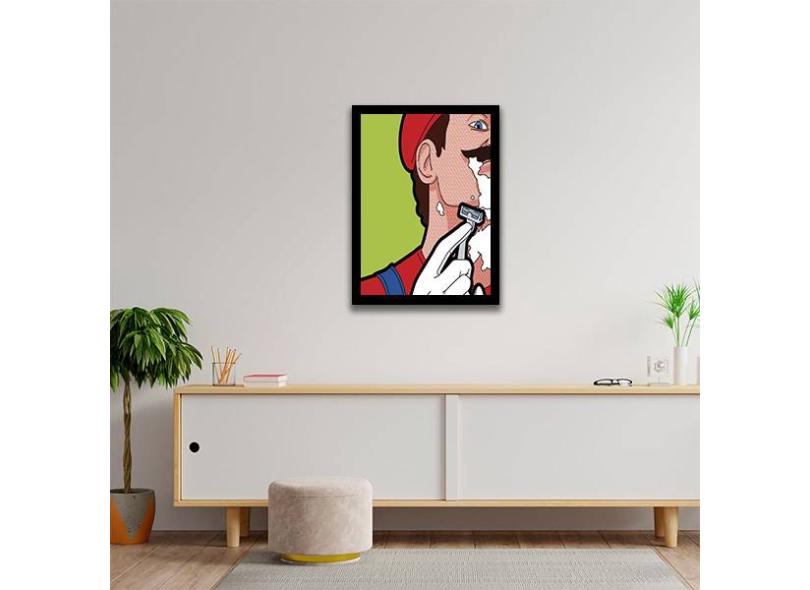 Quadro Decorativo Super Mário se Barbeando 45x34cm