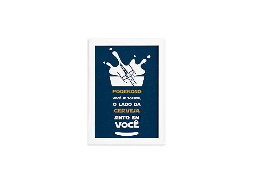 Quadro Geek Jedi Lado da Cerveja Moldura 33x43cm