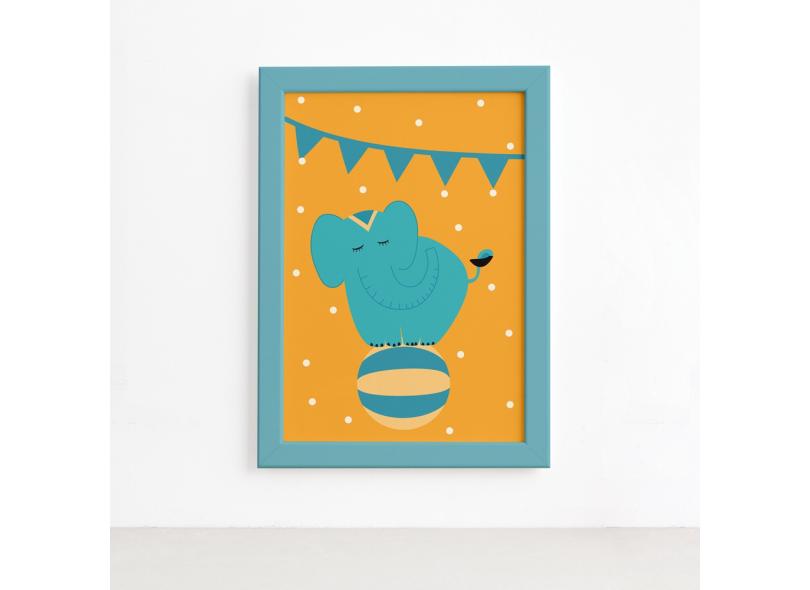 Quadro Infantil Circo Elefante Quarto Moldura 22x32