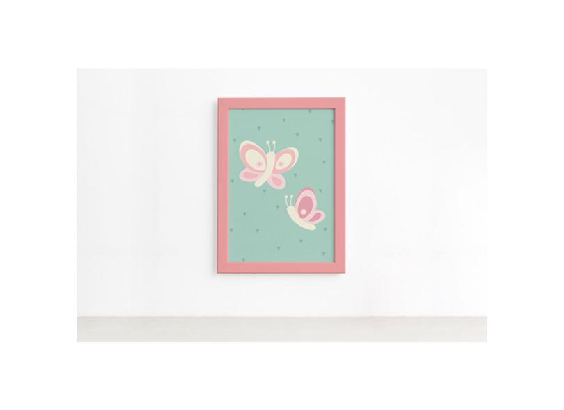 Quadro Infantil Coruja Baby Borboletas Moldura 22x32cm