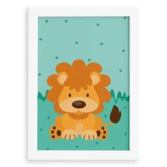 Quadro Infantil Safari Leão Quarto Moldura 22x32cm