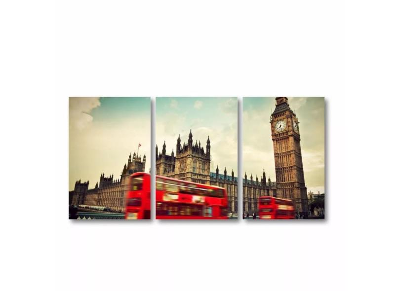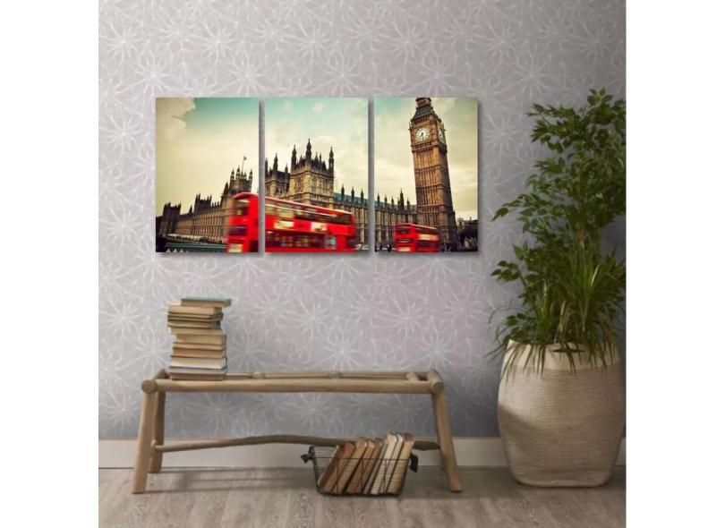 Quadro Londres Paisagem Retro Decorativo Em Tecido 3 Peças