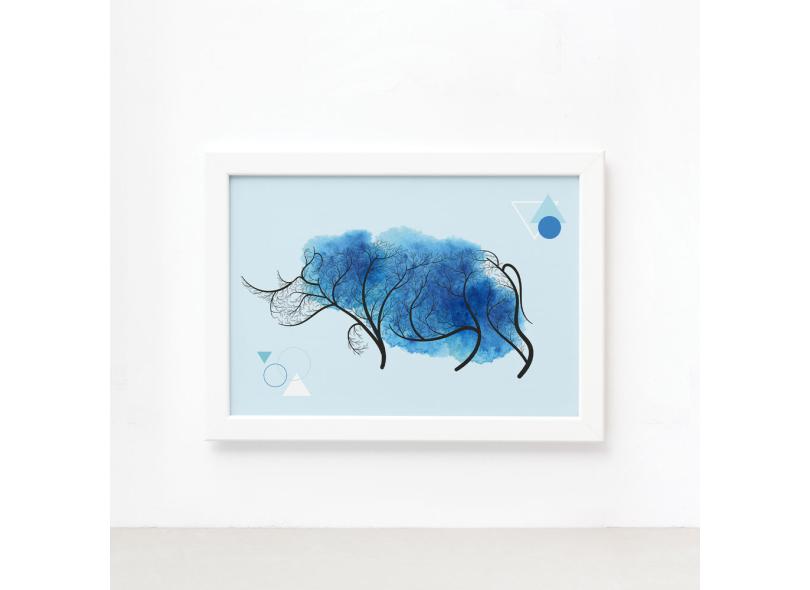 Quadro Minimalista Safari Rinoceronte Moldura 33x43cm