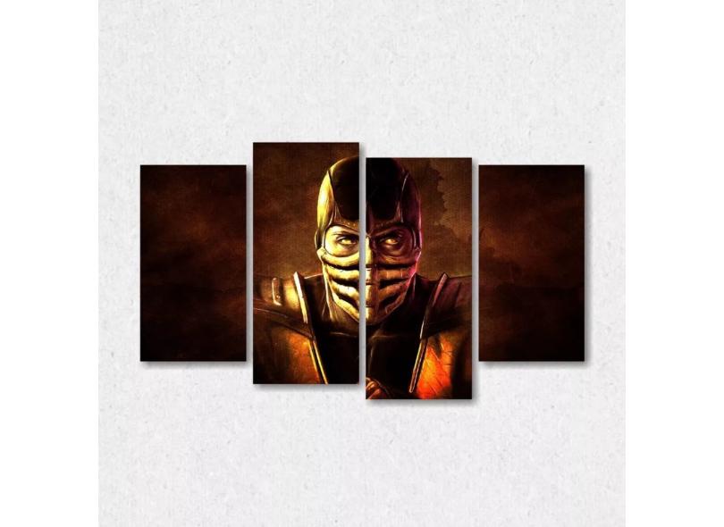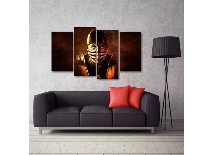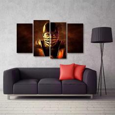 Quadro Mortal Kombat Scorpion Mosaico Sala Em Tecido 4 Peças