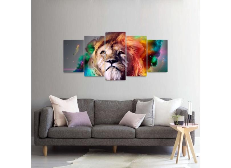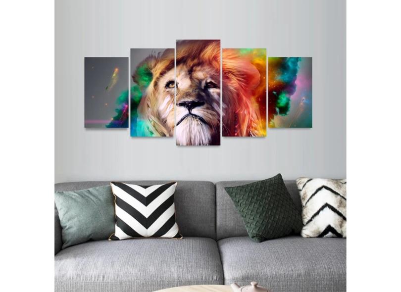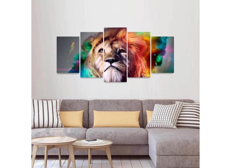 Quadro Mosaico 130x63 Leão Moderno Colorido decorativo
